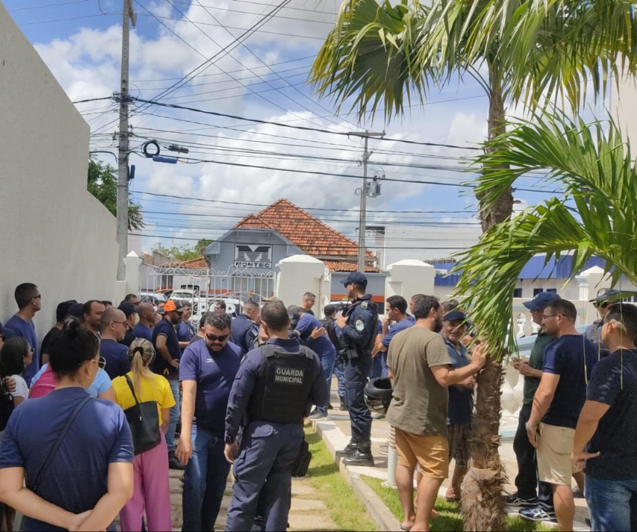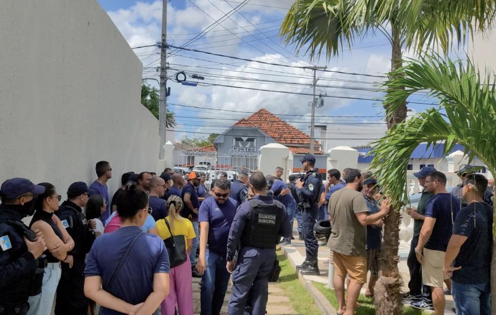 Aglomerados na entrada do Palácio da Resistência, os guardas não esconderam a revolta com o tratamento que têm recebido da gestão municipal. O comando da categoria afirmou que o prefeito Allyson Bezerra não cumpriu nenhuma promessa feita aos guardas municipais na campanha de 2020.