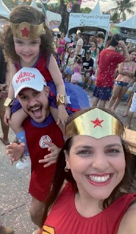 Luiz Eduardo e Lívia Areias com a filha linda Luizinha, na folia do bloco infantil, em Pirangi.
