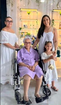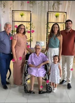 Nos 91 anos de Nivinha Câmara, em cena a filha Beta Câmara, o amado Ivanaldo, Niverne e a filha Nívea. Família feliz!
