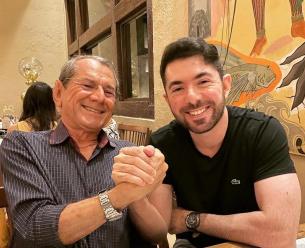 O grande amigo, medico Dr. Nilton Firmino festejando seu niver hoje. Ele feliz da vida com o filho, Dr. Nilton Segundo. Votos de muitas felicidades!