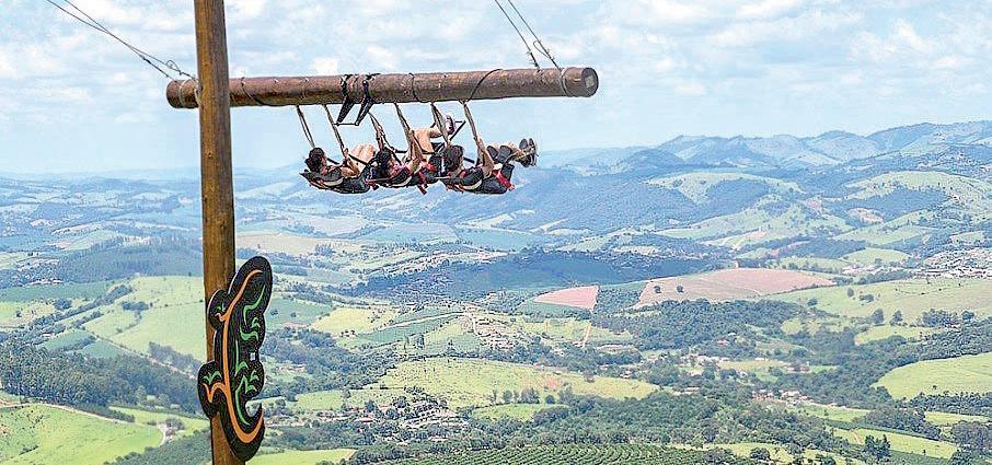 ravilhoso pôr do sol, um bom restaurante, além de atividades radicais como rapel e, desta vez, com novidades. Os mais atrevidos, ou corajosos, puderam desfrutar do maior Balanço de Três lugares do Brasil – Swing Rock. Vocês não têm noção do que seja isso! Imaginem um balanço que te leva para um espaço aberto num precipício de mais ou menos 150 metros do chão. Nossa! Espetacular!