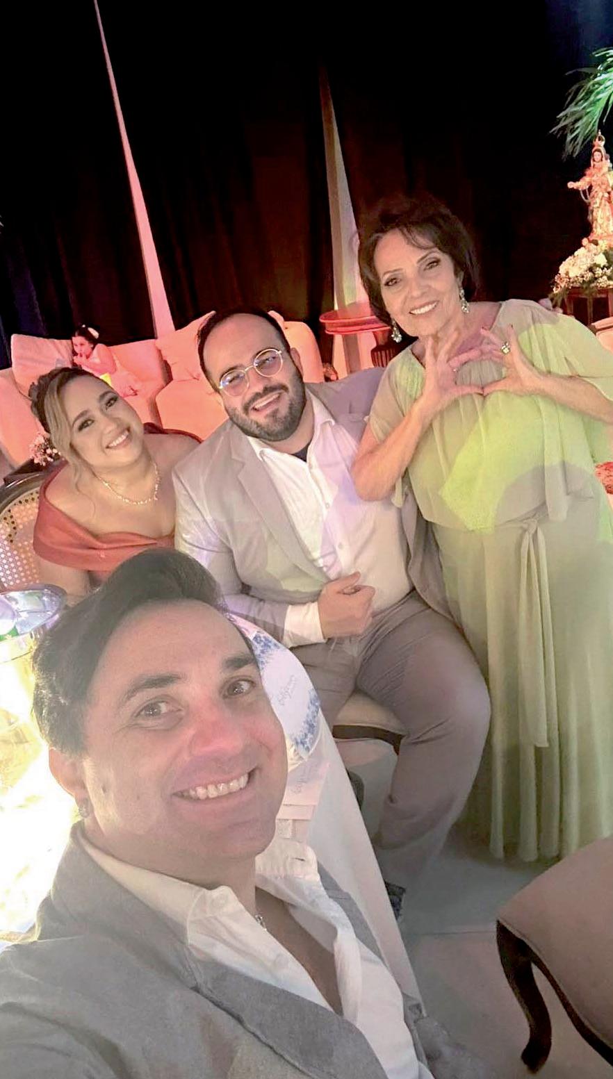 Amo amá-los! Casal Charles Segundo e Mariana Duarte com Zoraide e Georgiano Azevedo na festa dos 80 anos de Elizenir Rosado, no Requinte Buffet.