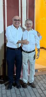 O advogado Marcos Araújo abraçando seu amigo, o aniversariante José Maria de Oliveira, em noite de Ação de Graças pelo dom da vida de quem semeia o bem há 70 anos. Grupo São Francisco em festa, homenageando José Maria de Oliveira. Vivas!