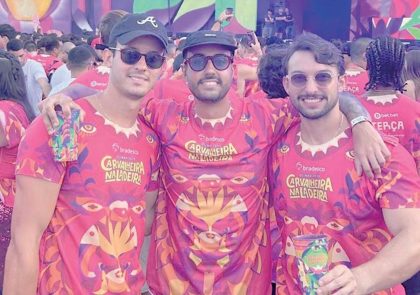Aqui no Galo da Madrugada, ladeado pelo sobrinho Hugo Leonardo e a namorada Sarah Aline