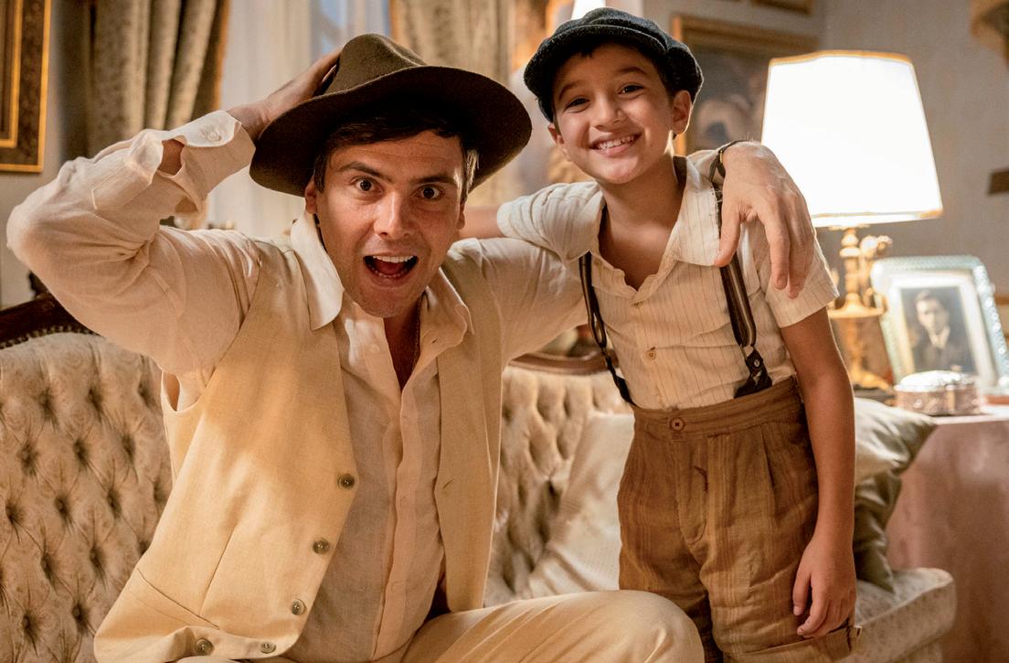 base bem definida ao começar a criar os figurinos da atual novela das seis. O novo guarda-roupa dos personagens mantém uma ligação com a trama de “Êta Mundo Bom!”, que foi ao ar em 2016. Candinho, papel de Sergio Guizé, agora é herdeiro, mas tem uma mudança muito sutil na forma de se vestir. Mesmo com dinheiro, ele continua com a estética desajeitada, característica do personagem. Toda a cor dele é crua, com um pouco de amarelo, que destaca a pureza e a referência em Mazzaropi. “Terão momentos, por exemplo, que o personagem vai colocar uma jaqueta. Mas quem ganha mais acessórios é o amigo Policarpo. Candinho fez um investimento no burro, que vai ter chapéu, gravata, touquinha de dormir e mantinhas”, aponta Flávia.