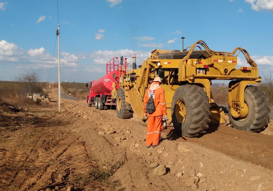 Os serviços em andamento são de pavimentação, execução de pontes e instalação de sina