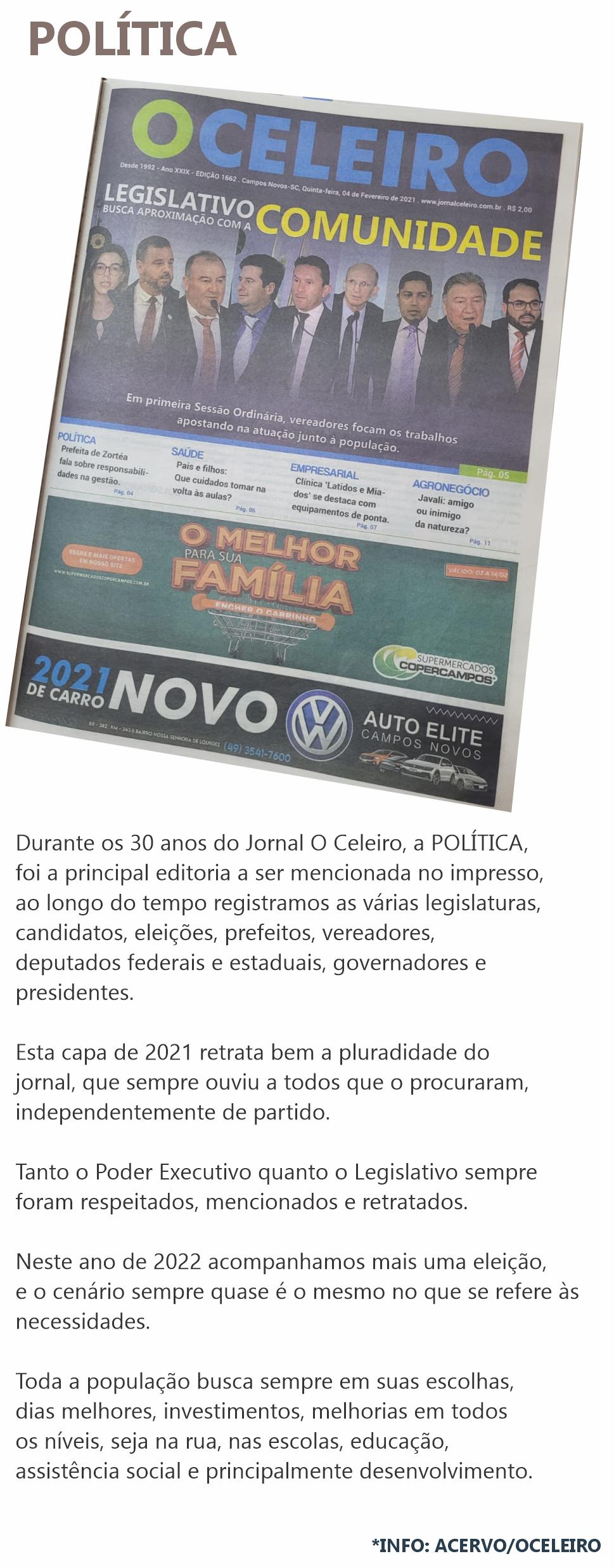 11Quinta-feira, 06 de Outubro de 2022. www.jornalceleiro.com.br ESTADO ASSINE JORNAL O CELEIRO E RECEBA TODA QUINTA-FEIRA SEU EXEMPLAR. ENTRE EM CONTATO CONOSCO: (49) 9 8828.2224