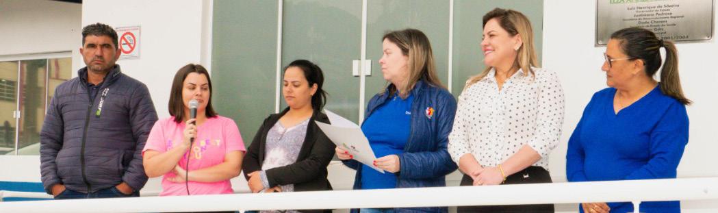 A prefeita Milena Lopes inaugu rou com muita alegria as cinco salas da Unidade de Saúde que foram repaginadas e equipadas com móveis novos. Ao lado dos servidores da saúde, a gestora se emo cionou ao observar o novo ambiente. A equipe da Unidade também ficou em festa pelas melhorias que serão significativas tanto para os profissionais quanto para a população. A beleza, cuidado e capricho foram vistos em cada detalhe. A iniciativa da Administração Municipal é promover a humanização e garantir o bom acolhi mento aos pacientes. “Meu desejo sempre