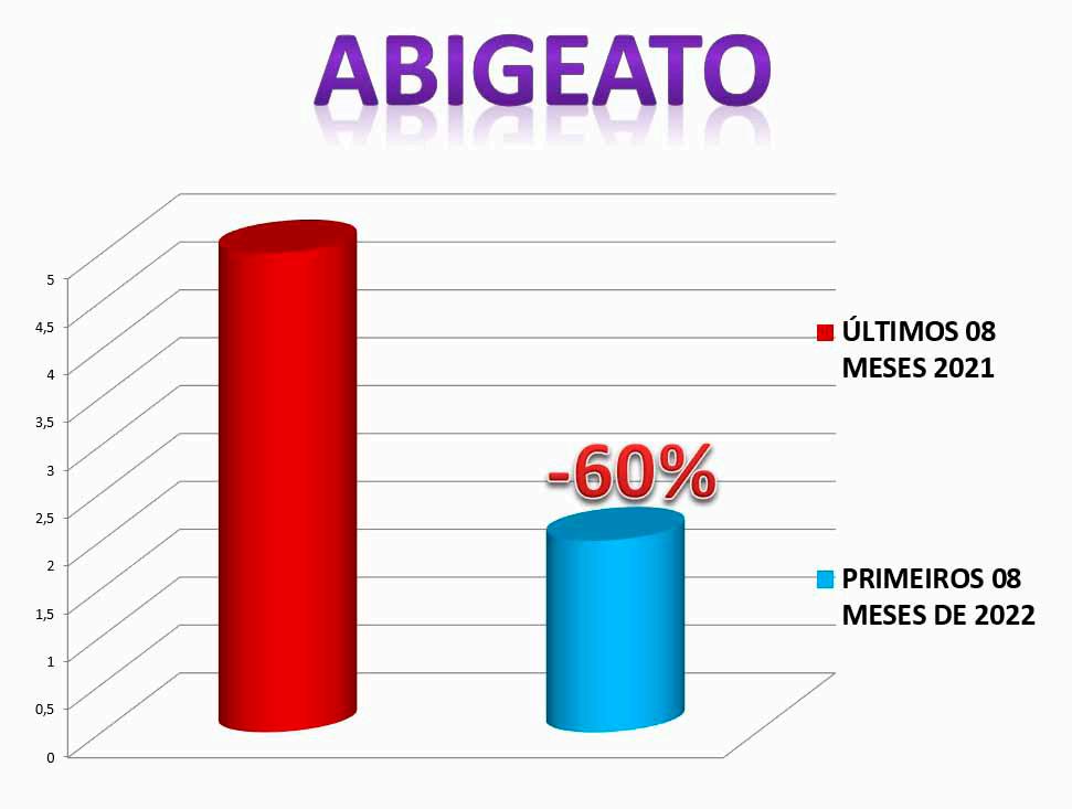 Outra preocupação da 3ª Cia da PM, são os casos de furtos consumados no município. Apesar da melhora obtida neste ano, com a queda de 17,6% de ações desta natureza, o número de 117 ocor rências registradas nos primeiros 7 meses deste ano, faz com que a corporação inten sifique o trabalho em prol da comunidade.