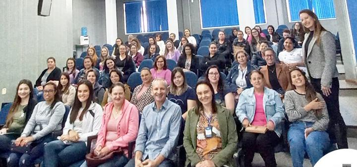 Profissionais de Saúde partici param de um curso de atualização sobre feridas, com a Enfermeira Daniela Mafio letti Floriano, especialista em estomatera pia e assessora técnica da empresa Fufa/ SC, realizado no município de Campos Novos. O evento foi promovido pela Co missão de integração e Ensino em Saúde - CIES, tendo como propósito a formação