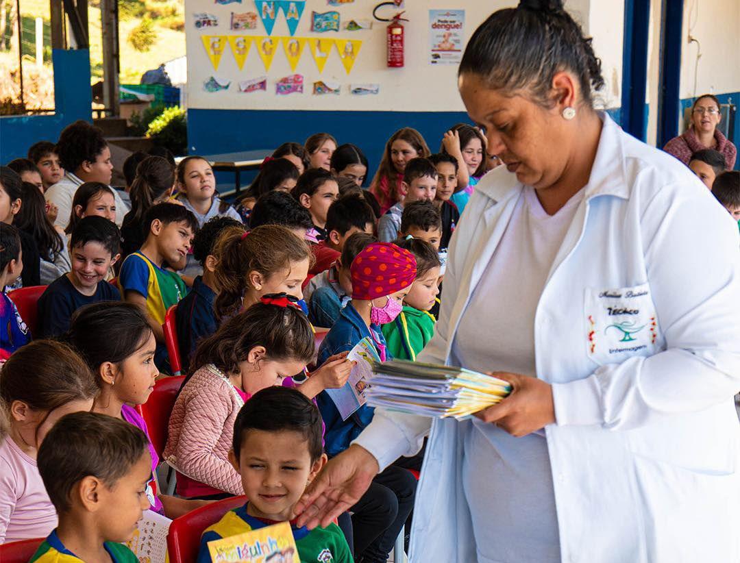 As profissionais de saúde realizaram uma palestra educativa sobre o mosquito da dengue, conscientizando as crianças sobre os perigos dessa doença e como preveni-la. Enquanto todos estavam atentos à palestra, algo surpreendente aconteceu: o personagem do mosquito da dengue surgiu entre as crianças. Com sua presença lúdica e interativa, o personagem envolveu todos os alunos, tornando o aprendizado ainda mais divertido e envolvente.