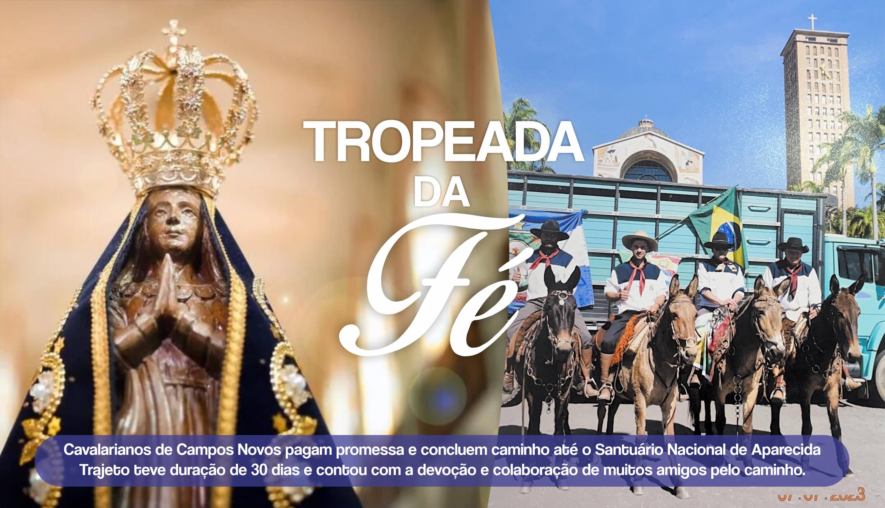 Dito isso, nesta semana tive a satisfação de conversar com Evandro Galiotto, um dos integrantes da Tropeada da Fé, assunto que é capa desta edição do nosso jornal. E numa conversa franca e amigável, ouvi relatos carregados de muita fé e emoção de alguém que por uma graça alcançada, resolveu pagar uma promessa, de uma maneira audaciosa e sem precedentes.