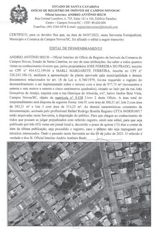 Rua: Valentin Suzin, 1056, Bairro Bom Jesus Campos Novos - Cep: 89620.000