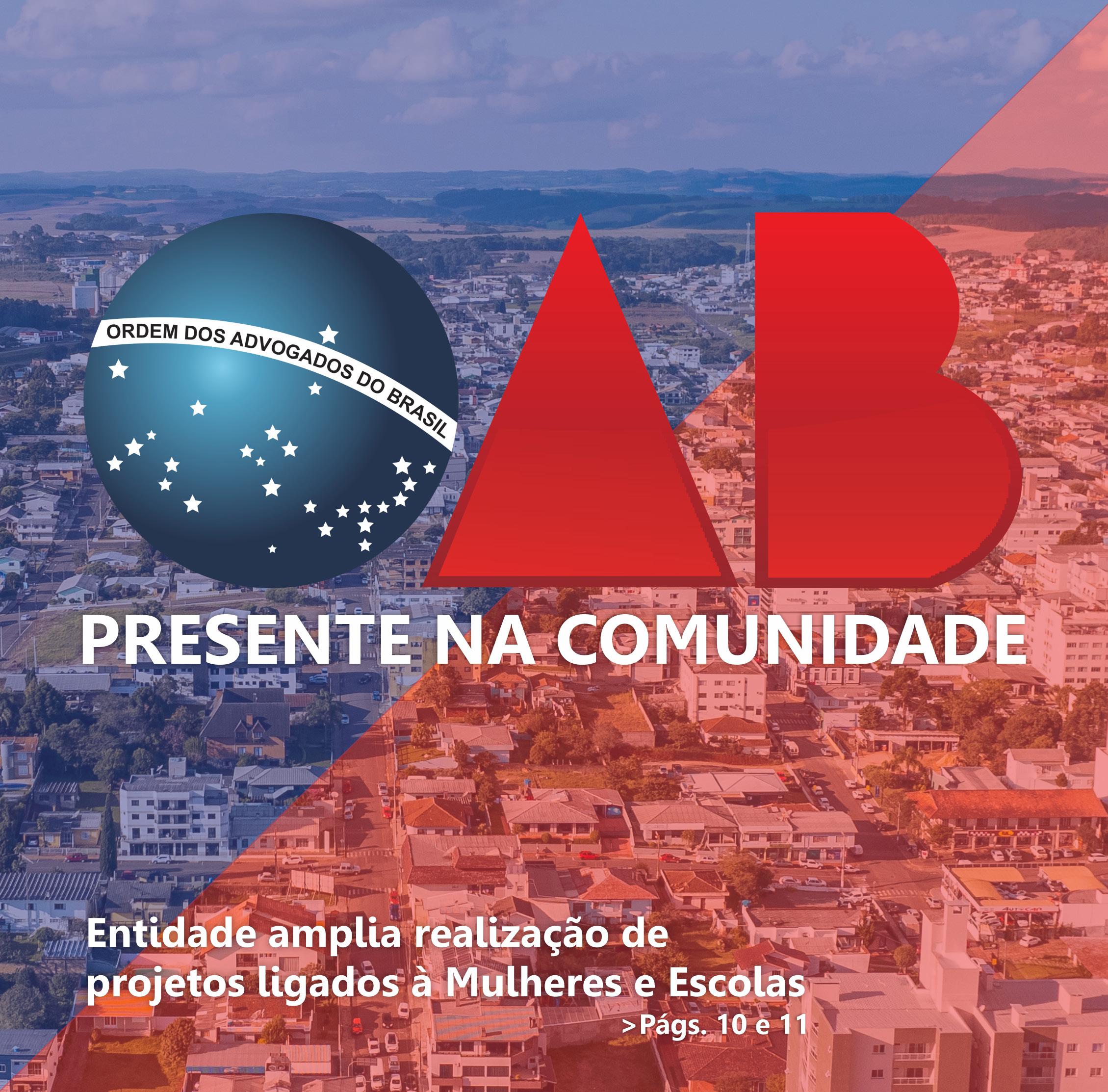ramos que ela tivesse bastante importância e participação dentro dos atos da nossa Subseção. Na gestão passada, como nessa gestão, foi realizado um ótimo trabalho, mas a atual gestão, o trabalho feito está sendo espetacular, tanto que hoje nós temos uma integrante da Comissão da Subseção que está na diretoria da Comissão Estadual, tamanho é a repercussão do trabalho feito, que vem sendo reconhecida a nível estadual. Então, ficamos muito feliz pelo objetivo estar sendo alcançado forma muito exitosa, o trabalho feito pela essa equipe é espetacular, onde eles vêm fazendo palestras constantes, levando informação não só para alunos, leva a informação para pais dos alunos, leva em empresas, leva em instituições, e isso é de fundamental importância porque o conhecimento é tudo, e as pessoas, hoje a gente nota que as pessoas que mais têm dificuldade de conhecimento, elas não têm conhecimento do que elas têm de direitos, do que elas têm de obrigações, e mesmo as crianças, principalmente as crianças acham que às vezes é só direitos e esquecem que elas têm deveres, deveres com os pais, deveres com a escola, e é isso que os nossos queridos colegas e da comissão têm levado, o projeto OAB vai à Escola é um projeto de sucesso, e realmente somos uma referência a Santa Catarina, e isso nos deixa muito felizes” destacou Eduardo.