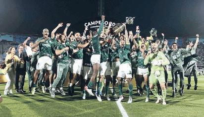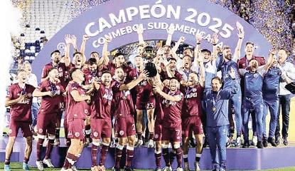 Equipe do Lanús comemora no gramado de Asunción o bicampeonato da Copa Sul-Americana