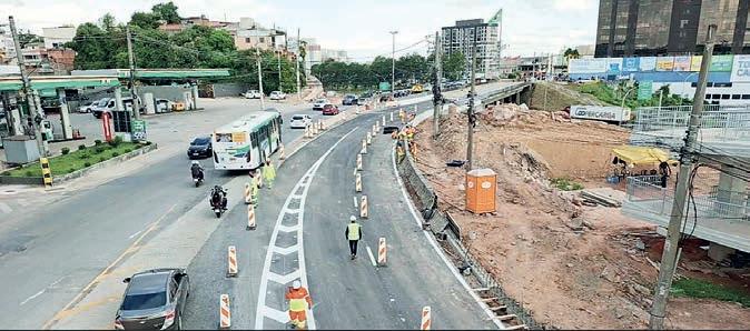 quinta-feira, 19/2, após a conclusão das intervenções na estrutura de prolongamento do viaduto. Com o avanço das obras, o viaduto volta a operar em sua configuração ampliada, passando a contar com três faixas