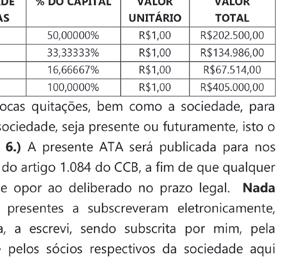 Pelo presente, na forma dos artigos 37,38,39,40,41,44,52,54,55,56 do Estatuto Social da Associação Habitacional Bom Futuro, fi cam convocados os Associados da SECCIONAL CARAPICUÍBA para a Assembleia Geral Extraordinária a ser realizada através de uma Live; no dia 24/11/2024 às 09:00 horas, com a presença de um auditor independente credenciado e convocado para o sorteio dos apartamentos da Torre II para deliberarem quanto à seguinte ordEM do dIa: a) Realização do sorteio de 02 unidades de apartamentos de necessidades especiais (PNE) conforme item 6 do quadro resumo do Termo de Adesão, sendo 50% ou seja 1 apartamento para o que mais antecipar em valores e 50%, ou seja 1 apartamento por sorteio e 124 unidades aos demais, sendo 50% ou seja 62 apartamentos para os que mais anteciparam em valores, e outros 50% ou seja 62 apartamentos por sorteio, conforme itens 8.1 e 8.2 da Cláusula VIII do Termo de Adesão. Todos os associados que estiverem interessados em fazer antecipação ou colocarem as suas contribuições em dia o prazo se encerrará em 08/11/2024, Santana de Parnaíba, 07 de Novembro de 2024 - Jonas Moraes Gonçalves - Diretor Presidente.