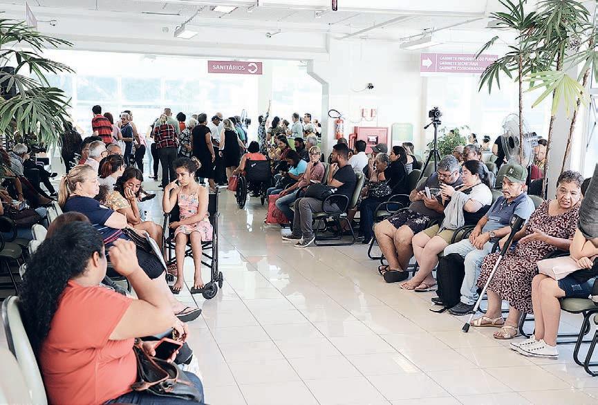 o cial como o maior programa público de saúde do mundo –não traz a solução imediata ou pelo menos breve aos males do cidadão que, pela Constituição, tem direito a ela. Os hospitais não dispõem do número de vagas e de procedimentos para atender à demanda e, ainda, reclama-se do baixo valor pago pelos procedimentos médico-hospitalares. Os pacientes de problemas crônicos vivem o desconforto físico e da espera. Mas os que têm o quadro agravado, muitas vezes enfrentam dias a até semanas de dor e sofrimento até receber o atendimento indicado que, dependendo da gravidade atingida no período de espera, é ine caz. É o sofrimento análogo ao do purgatório (lugar onde se pagam os pecados), sem a garantia de acesso ao paraíso. O sistema de saúde pública brasileiro foi estruturado a partir dos institutos de classes pro ssionais iniciados há um século.