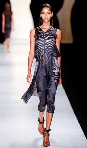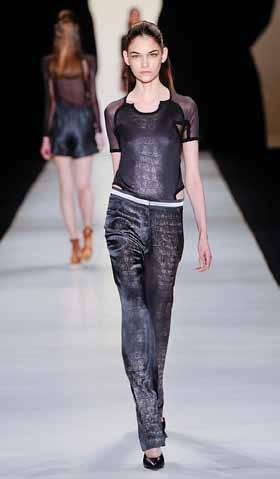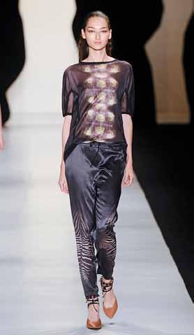 As noites da savana africana serviram de cenário para o verão 2013 da Animale. Sedas em tons terrosos e com pitadas de dourado dominaram o desfile. Transparências, assimetrias e recortes precisos, trouxeram estrutura e leveza. A sensualidade ficou por conta do efeito de segunda pele presente em algumas peças, assim como nas estampas animais, ora em calças ajustadas, ora em looks totais