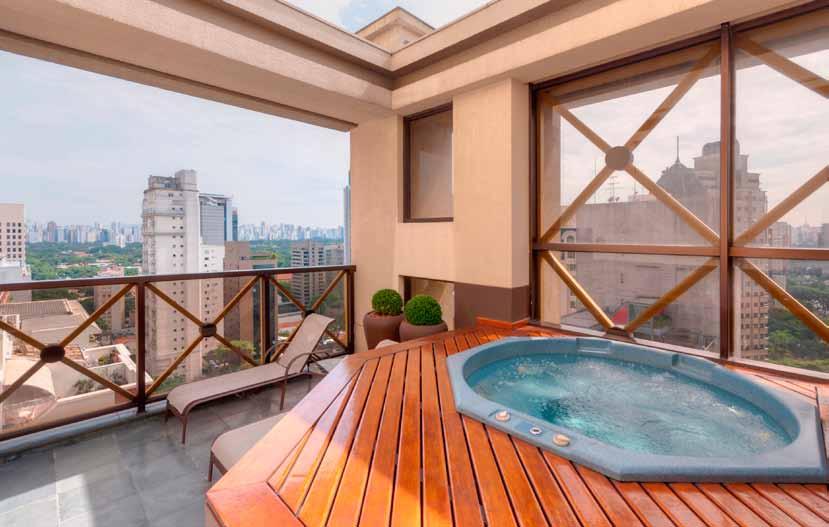 Detalhes técnicos: sistema de aquecimento inteligente, cascata em aço inox, frigobar refrigerado, sistema de filtragem da água com Ozônio, cromoterapia (iluminação com leds de alto brilho chegando até 32 cores), acionador