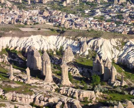 Porém, além desse lado histórico e religioso, a Capadócia oferece ainda um dos passeios mais lindos que já fiz: o passeio de balão. Apesar da saída do hotel ter sido as 04:00h!, quando cheguei vi uma planície onde meus olhos já não podiam contar os balões que estavam tomando forma e onde o sol começava a mostrar o que o dia me reservaria. Não tinha como não ficar atônita ao ver o baloeiro informar que a aventura iria começar e, num piscar de olhos, estava sobrevoando um vale lindo e iluminado pelos primeiros raios de sol. A mistura de sentimentos e sensações me sugeriam que finalmente havia conseguido desbravar aquela terra cheia de surpresas e sensações inimagináveis.