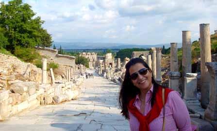 fotografia parecer um exímio profissional. Éfeso foi a segunda cidade mais importante do Império Romano, depois de Roma. Conheci o Templo de Adriano, o Portão de Hercules, a Biblioteca de Celso e por fim, o Grande Teatro. Ele foi construído originalmente no século 3 a.C e reconstruído no primeiro século d.C, com capacidade de receber até 24.000