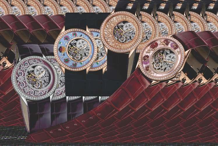 Cada relógio possui um movimento de mãogravado: calibre ultra-fino 1003 em ouro 18K. Impressiona sua decoração frontal com a precisão de quase um décimo de milímetro, enquanto na parte traseira apresenta um acabamento chanfrado e desenhado à mão, criando um olhar refinado