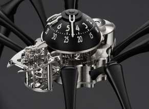 o movimento e a marcação foram projetados para essa versão feminina. O mostrador é típico para a marca, com os satélites que indicam as horas que passam ao longo de uma escala linear para os minutos, sem o indicador de segundos. É ainda simétrico, com indicador de fase da lua no centro e uma bela lapis Lazuli ao fundo. Foram criadas somente 11 peças, nas opções escuro e claro Este objeto de desejo está avaliado em torno de $ 88.000