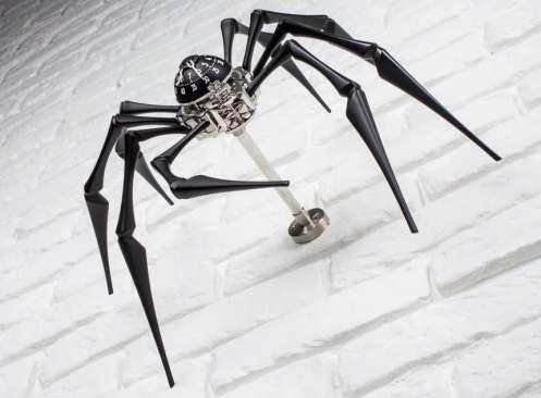 provavelmente, um dos relógios mais inovadores já visto! É chamado de Aracnofobia, por razões óbvias, este relógio conta o tempo e consegue rastejar excepcionalmente bem! Criado por MB & F e trabalhado à existência por L'Epée 1839 Aracnofobia é inspirado por Maman, uma escultura monumental de aranha feita pelo artista franco-americano e escultor Louise Bourgeois. Com uma cúpula em preto e branco para exibir numerais entre horas e minutos, este relógio também possui oito pernas articuladas. As pernas mantém o Aracnofobia vertical em tampos de mesa, mas também pode ser instalado em paredes, como uma verdadeira aranha. O relógio não é tão grande como a escultura que a inspirou, mas consegue chamar muito a atenção, especialmente em uma mesa de escritório O Aracnofobia está disponível em uma versão preta entre $ 15.800 e numa edição banhada a ouro 18k avaliadA ENTRE $ 18.050