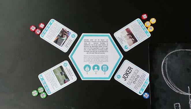 Cool the City zielt darauf ab, die Bürgerinnen und Bürger zu informieren und sie in die Entwicklung von Vorschlägen einzubeziehen. Als primäres Kommunikationsinstrument haben wir ein Brettspiel entwickelt, das die Probleme der städtischen Wärmeinsel und die Maßnahmen/ Interventionen, die die Auswirkungen des Phänomens in der Stadt verringern können, widerspiegelt. Es hilft den Bürgern zu verstehen, wer am Entscheidungsprozess beteiligt ist, welche Rollen sie spielen und welche Ressourcen zur Verfügung stehen. Es regt die Akteure dazu an, die Stärken der einzelnen Akteure kreativ zu nutzen und dabei zu berücksichtigen, dass Allianzen und Zusammenarbeit eine Voraussetzung für die Bewältigung städtischer Probleme sind.