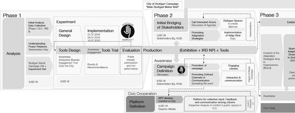 Da die Strategie eine Stadt vorsieht, in der die Stuttgarter Bürger aktive Akteure sind, die Ideen zur Verbesserung der Anpassungsfähigkeit der gebauten Umwelt einbringen, dokumentiert das vorgeschlagene Instrument einen partizipativen Bottom-up-Prozess, der die Ansichten und Bedürfnisse der Bürger einbezieht. Dieser Prozess konzentriert sich auf die Erkundung verschiedener Alternativen zur Erarbeitung der in der Strategie festgelegten Ziele, wobei der Schwerpunkt auf der Sensibilisierung und Empowerment der Bürger liegt.