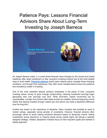 Joseph Barreca is a financial advisor serving as Managing Director of Investments and Senior Vice President at Wells Fargo Advisors in Covington, Louisiana. He has more than 25 years of experience in the financial services industry and focuses on wealth management, including investment advisory services, retirement planning, and college savings strategies. His career has been built on long-term client relationships and consistent service across changing market conditions. He attended Holy Cross High School in New Orleans from 1990 to 1994. After high school, he enrolled at Louisiana State University and earned a Bachelor of Science degree in 1999. While at LSU, he participated in LSU Football, the Fellowship of Christian Athletes, the CHAMPS Program, and Junior Achievement. These experiences contributed to his understanding of teamwork, discipline, and responsibility. Joseph P. Barreca began his career in financial services in 1999 during a period of growth for bank-based investment programs. Early in his career, he focused on learning the regulatory, operational, and client service sides of the business. He placed importance on helping clients understand financial decisions clearly and realistically. In November 2003, Joseph Barreca joined Iberia Financial Services, LLC, a wholly owned subsidiary of IBERIABANK, where he served as Senior Vice President. During this time, investment and insurance products and services were offered through Infinex Investments, Inc., a registered broker-dealer and Member FINRA/SIPC. From 1999 through 2020, he maintained a 20-year record of being named to the Circle of Excellence at Iberia Financial Services. He was recognized multiple times as one of the Top 50 Bank Investment Consultants.