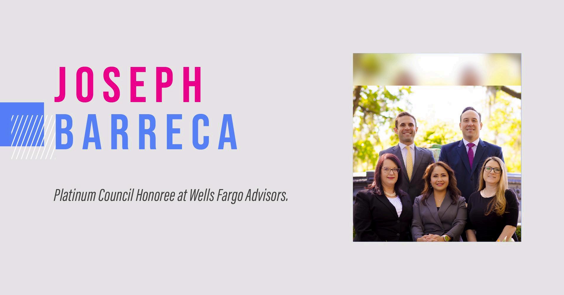 In October 2024, Joseph P. Barreca joined Wells Fargo Advisors as Managing Director of Investments and Senior Vice President. In his current role, he continues to focus on holistic wealth management by integrating investment advisory services with retirement income planning, wealth transfer planning, and college savings. His practice serves clients across multiple states, subject to applicable regulations, while maintaining a consistent focus on professionalism and long-term planning.