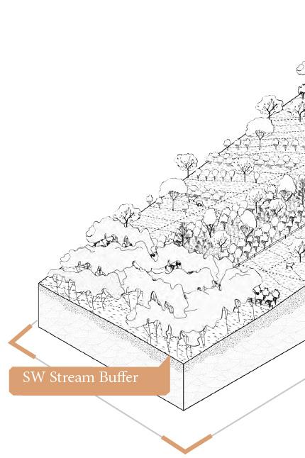 Buffer Mitigates Upstream Runoff Dense planting scheme overlain upon area determined to be of runoff concern for downstream watershed.