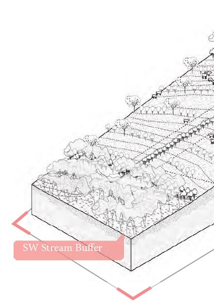 In partnership with the University of Pennsylvania’s School of Veterinary Medicine, Penn Praxis has proposed several potential designs for campus-wide ‘working buffer’ schemes that protect the upper watershed system that runs through the New Bolton Center’s campus + working farm. In this initial phase, the Praxis team developed several silvapasture schemes that aim to demonstrate the potential of integrated tree crops into pasture as a dual watershed protection feature and potential economic benefit to farmers in the region..
