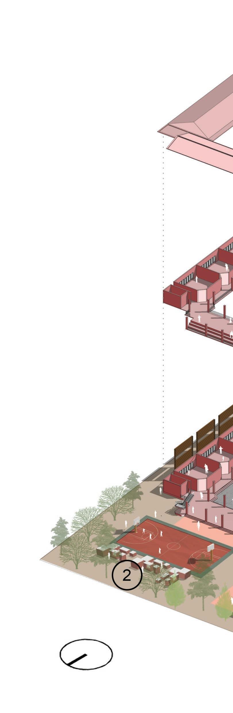 With respect to the site analysis done before, the site was divided into 3 main zones