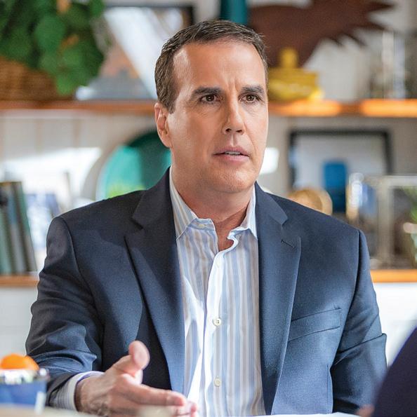 “I tr y to keep the news on so that I’m informed, and things like HGTV and Food Network I’ll flip around a little bit, but it’s rare. I don’t relax par ticularly well, so I have to turn of f ever ything and do yoga and meditate.”