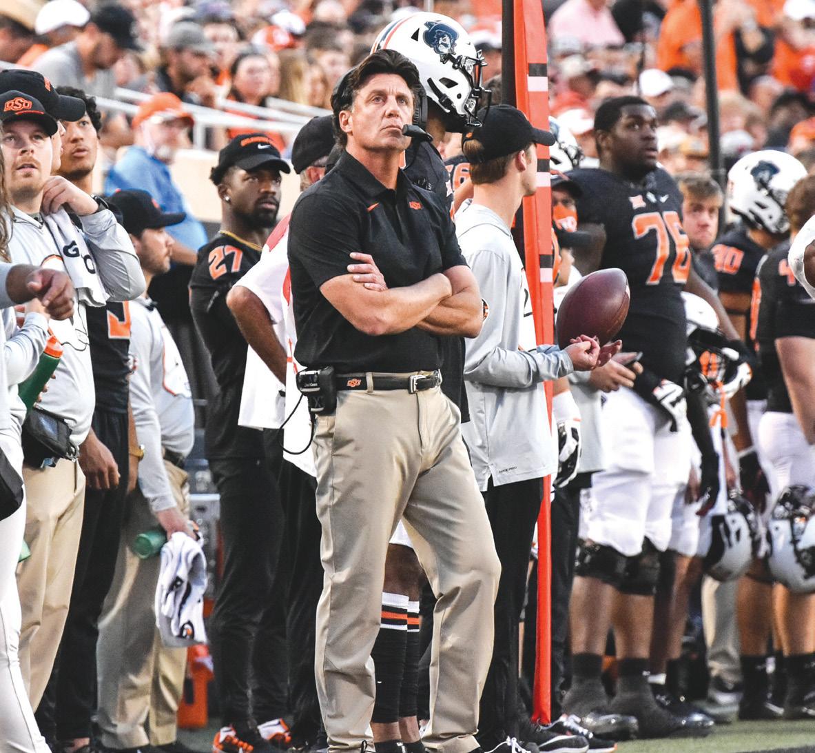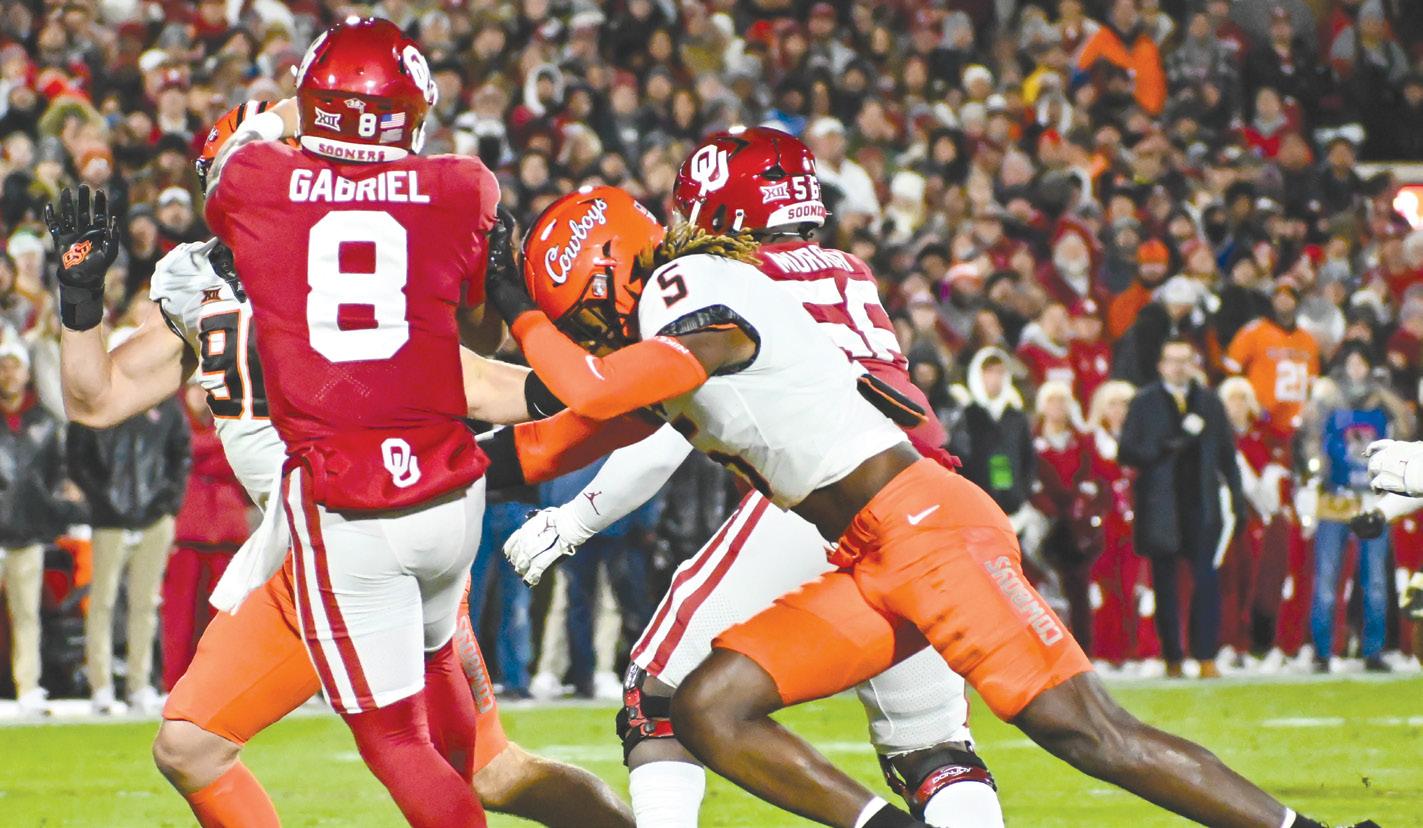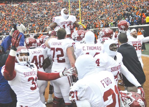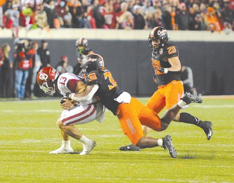 O-State snapped an eightgame OU win streak in 2011 when veteran quarterback Brandon Weeden led the talented Pokes to a 44-10 win. Weeden passed for 217 yards, Joseph Randle ran for 151 yards and two TDs and Justin Blackmon caught 10 passes for 95 yards.