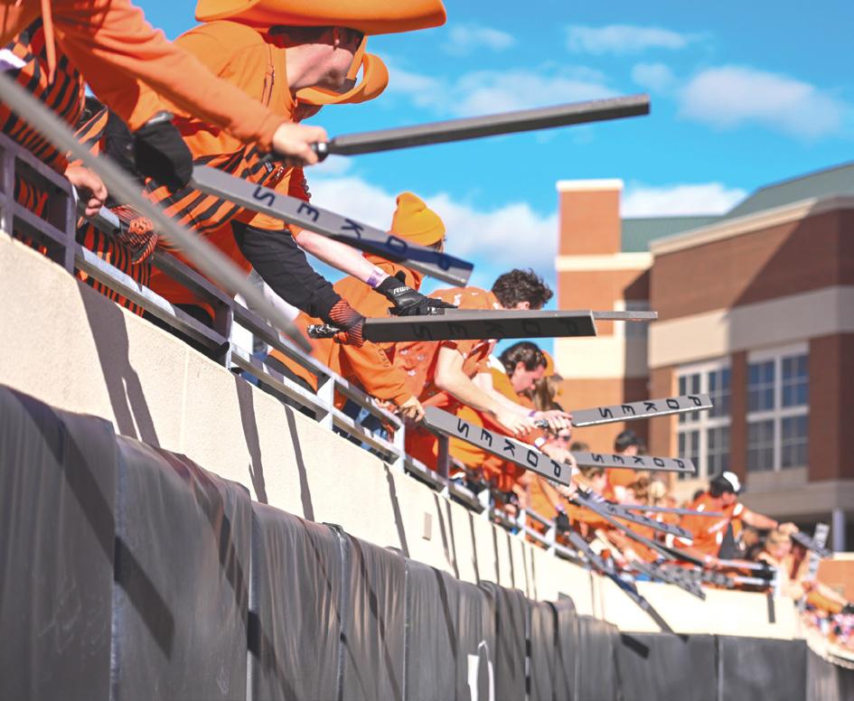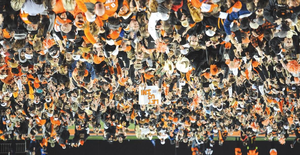 Fans spill onto the field in the aftermath of No. 7 Oklahoma State’s 37-33 win over rival No. 10 Oklahoma on Nov. 27, 2021, at Boone Pickens Stadium. The triumph marked the Cowboys’ rstfi at home in a decade.