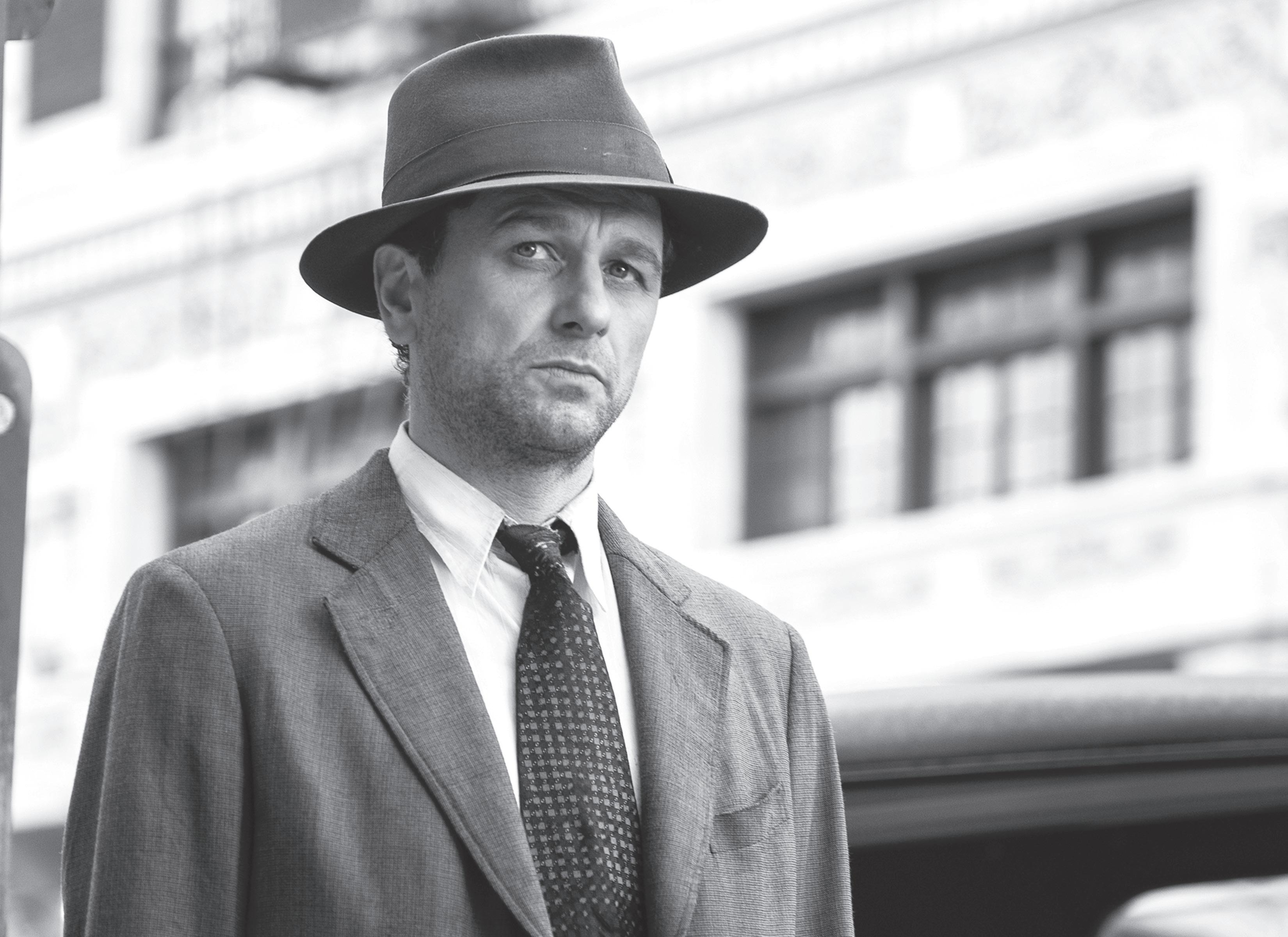 “When you’re engulfed in something on this kind of scale, it’s hard not to believe the world you’re in,” Rhys reasons of the “Perry Mason” costumes and production design that are so evocative of the early 1930s. “You don’t see anything but hundreds of supporting actors in the costumes and cars, and whole streets have been made to look the way they were then, so it only strengthens the make-believe.”