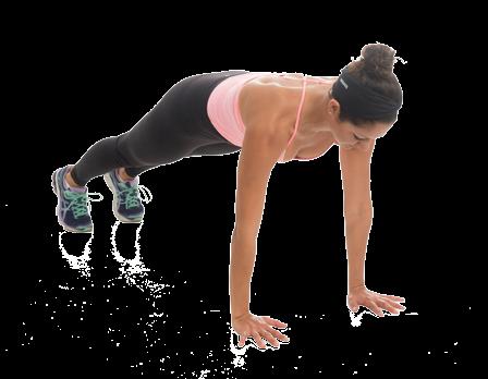 • Begin in plank position with palms firmly placed on floor beneath the shoulders.