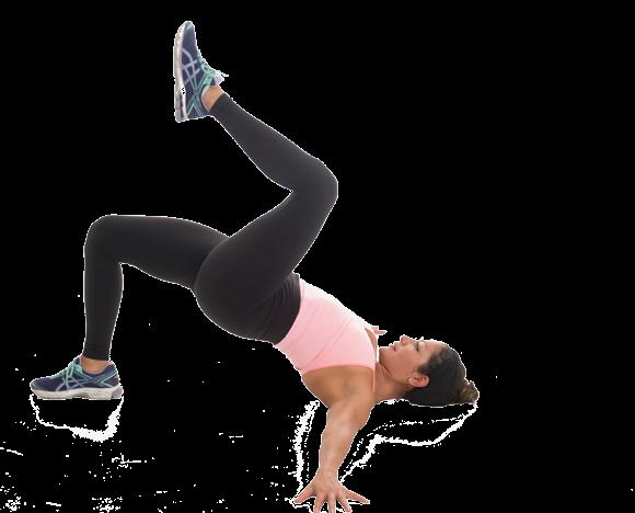 *When you get stronger, for a “High” option ONLY, when you lift the hips, squeeze the glutes, keep the hips aligned and lift one leg to the sky!