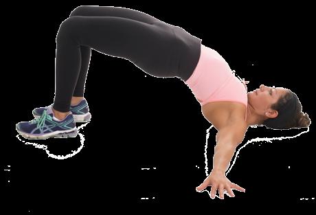 • Pressing into the heels and feet, squeeze the glutes and lift the hips as high as you can. Hold for 5 seconds and release. Repeat 5-10 reps daily.