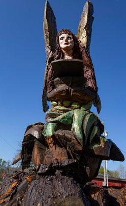 The wings of the tree-carved fairy at the Redding house in Fort Gibson need occasional coating of varathane to keep the piece in excellent condition and display the detail of the design work by Shawn Helgeson.