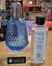 The master bathroom features glass shelves and a tub with colored lights.