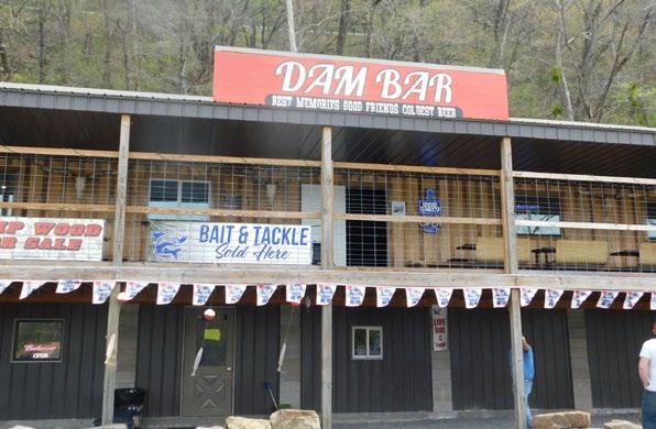 ABOVE THEN CLOCKWISE: The Dam Bar at the Fort Gibson Dam went from a one-story watering hole before the 2019 flood to a two-story establishment complete with a bait and tackle shop on the bottom level.