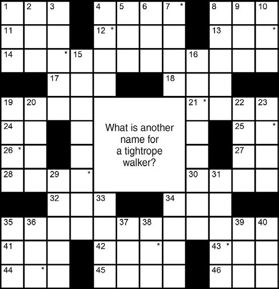The solution to the question is found within the answers in the puzzle. In order to take the TV Challenge, unscramble the letters noted with asterisks within the puzzle.