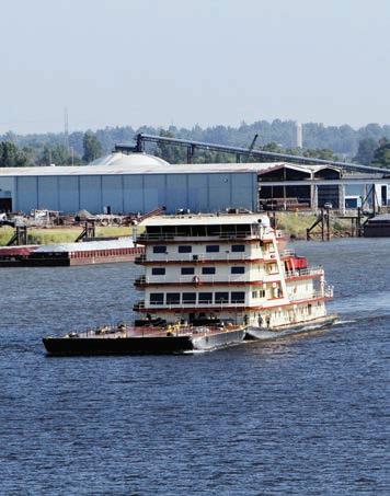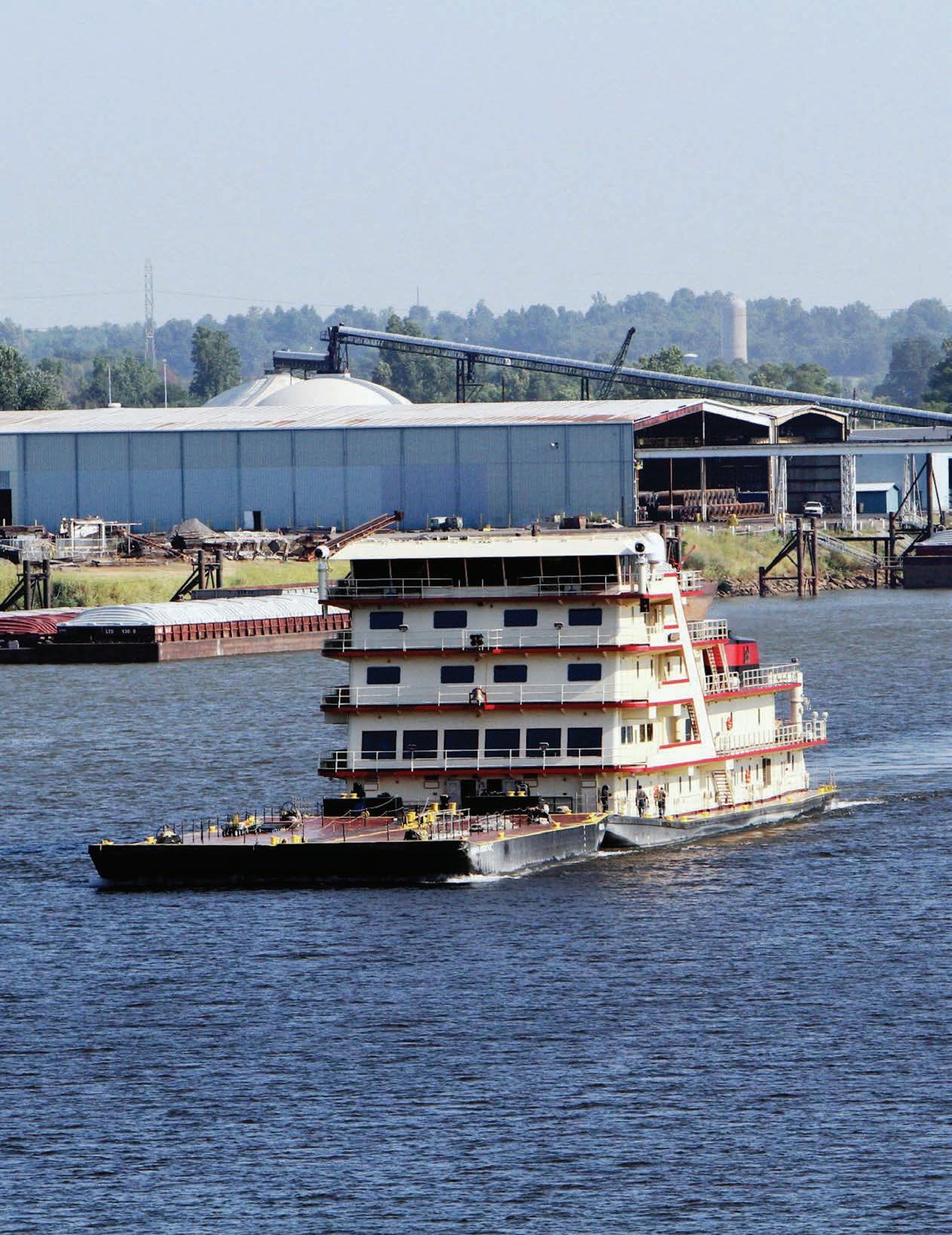 barge travels down the Arkansas River in Oklahoma's River City Region.