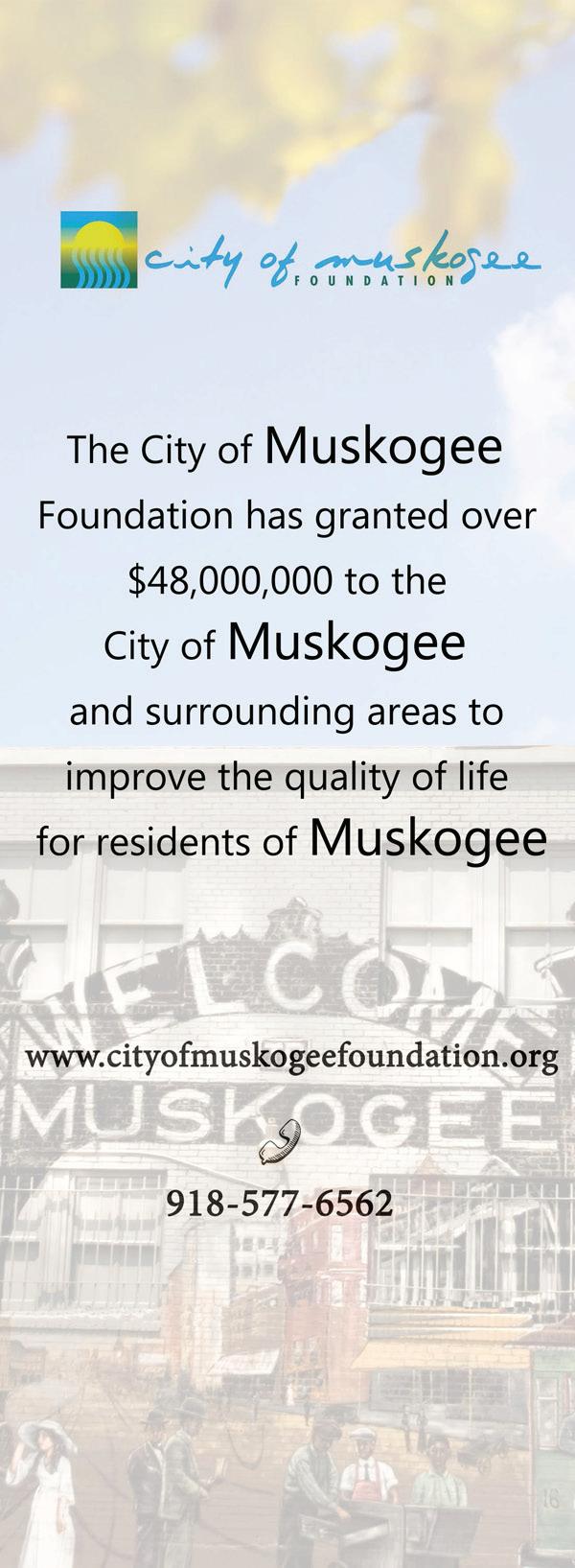 Oklahoma River City Region magazine is published quarterly by the Muskogee Phoenix. Contents of the magazine are by the Muskogee Phoenix. No part of this magazine may be reproduced, stored in a retrieval system, or transmitted in any form or by any means, electronic, mechanical, photocopying, recording, or otherwise without the prior consent of the Muskogee Phoenix.