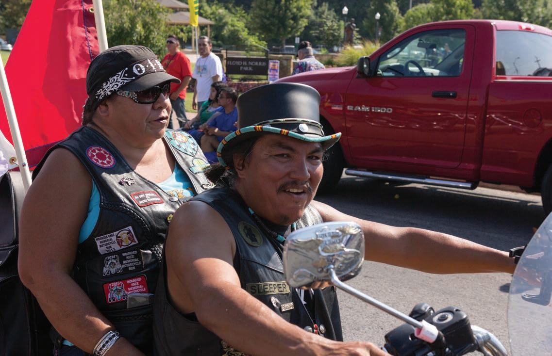 Oklahoma NDN BKR club members roll through downtown Tahlequah at the Cherokee National Holiday parade during the 2015 holiday.